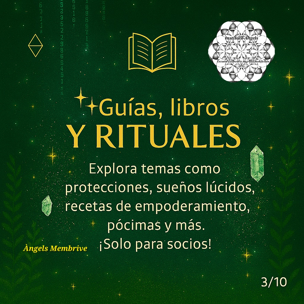-  Guías y libros, con información y temas reveladores. ( Protecciones, sueños lúcidos, recetas de empoderamiento, rituales, pócimas).
