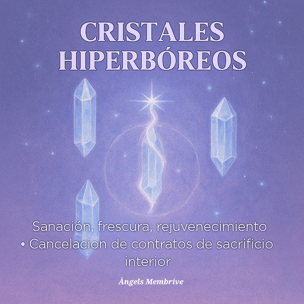 - Los cuatro cristales Hiperbóreos trabajados conjuntamente nos aportan frescura, rejuvenecimiento, sanación, perdida de miedos para poder florecer en total plenitud cancelando contratos de sacrificios. Tienes la meditación a tierras hiperbóreas y también la composición álmica de cada código, entre los muchos trabajos que vas a realizar tendrás el de abrir tu sagrado corazón a la santa trinidad que te creó, despertaras tu fuerza de cristal que te guiará, aceptándote y expandiéndote integraras su frecuencia primordial, y recordaras que para ser feliz todo está en ti. Al florecer nos mostramos sin miedo al mundo, activando nuestra luz. Florecer y cancelar cualquier contrato de sacrificio, soltamos para ser luz.